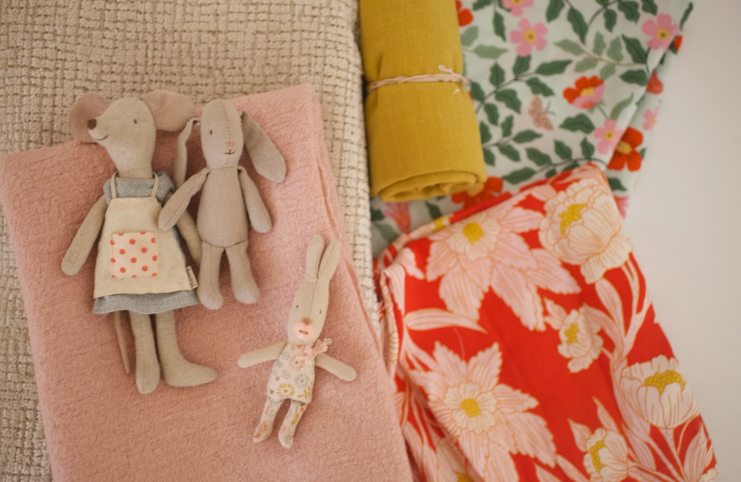 I picked up all of these cute fabrics for our vintage mouse house project from Hart’s fabric in Santa Cruz. (Note: mice we’re purchased elsewhere)
